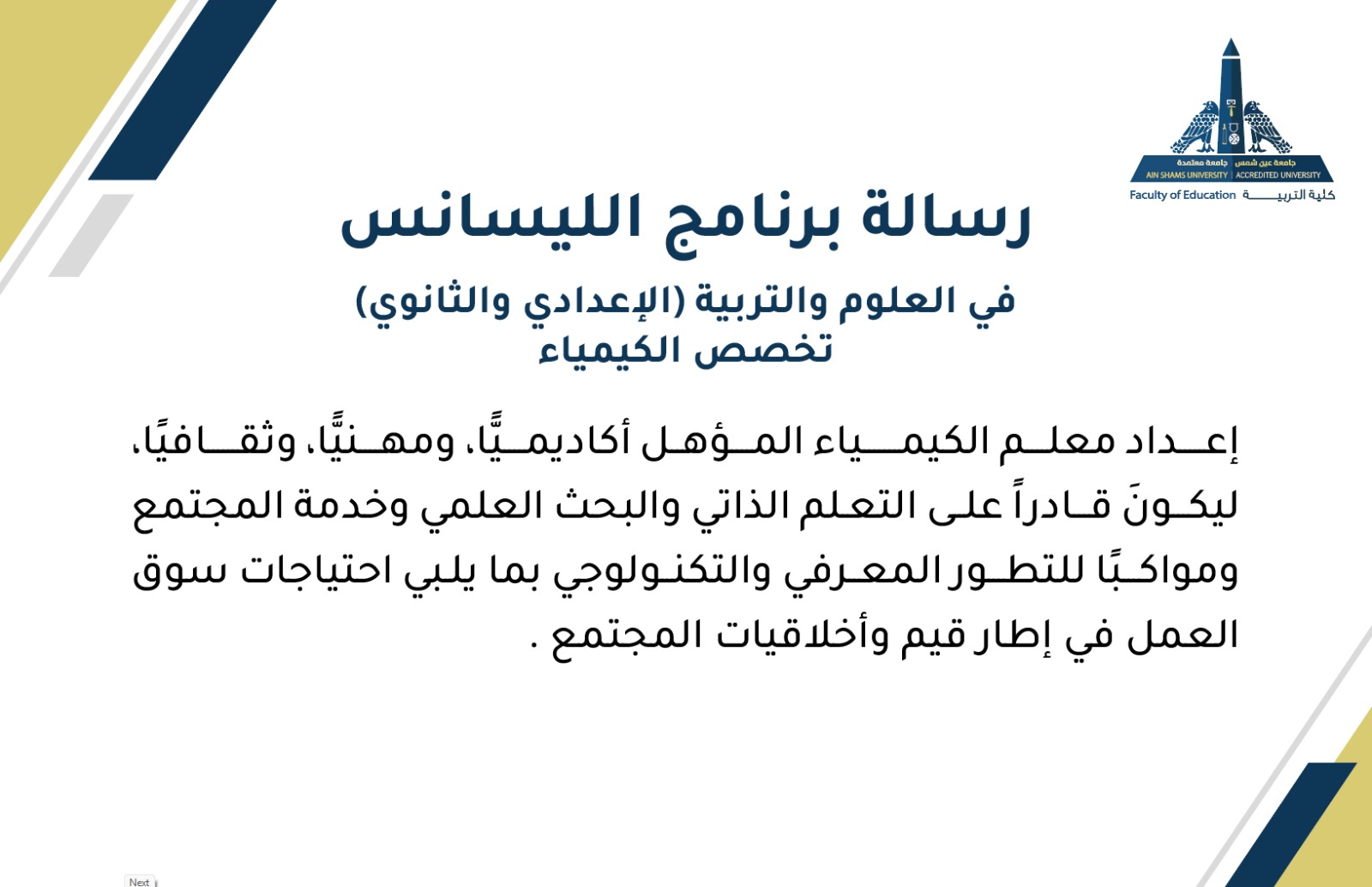 السمات التنافسية لبرنامج الكيمياء اعدادي وثانوي